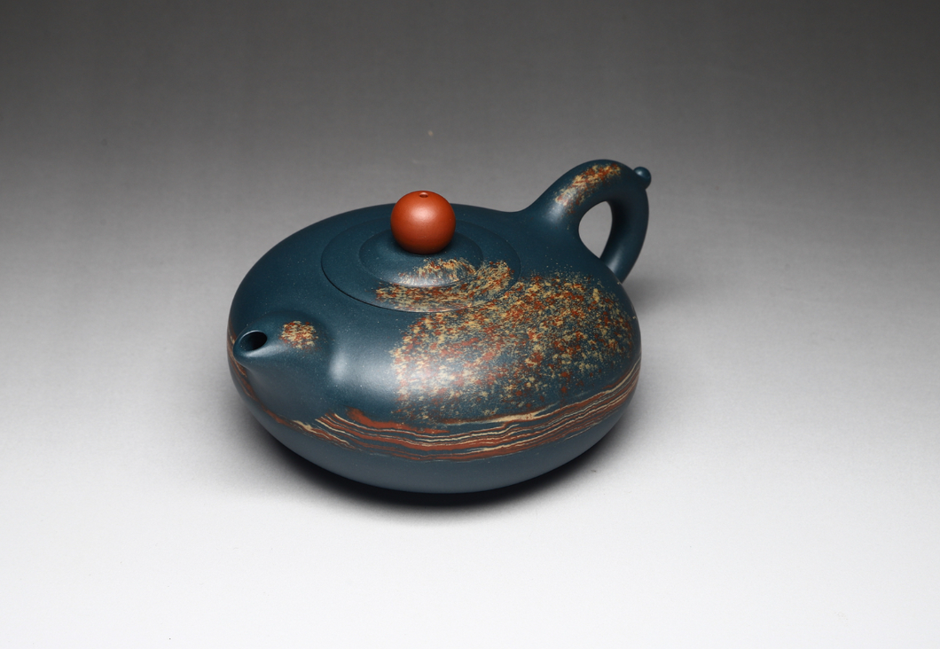 突破传统紫砂单色或双色限制,季益顺大胆运用“铺砂”、“调砂”及“低温色泥”技术。他的作品色彩丰富却不艳俗,过渡自然如天成。这种华丽的视觉效果,使其作品既能登大雅之堂供文人品鉴,又能以其生动的趣味吸引大众目光。